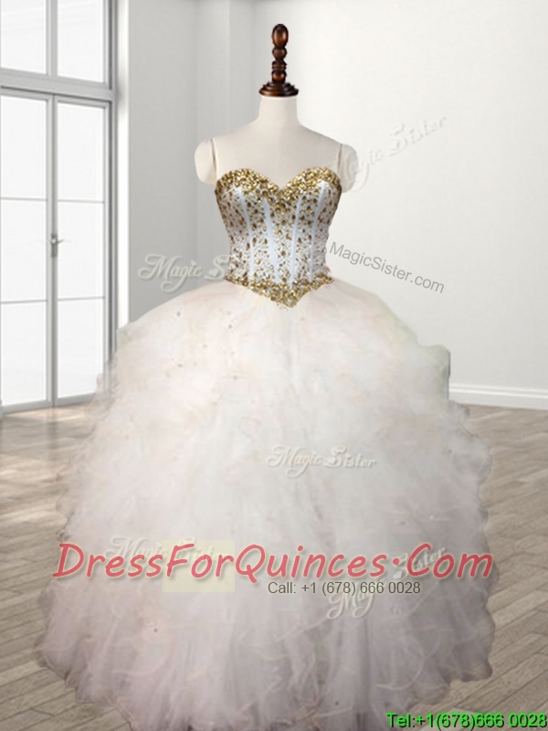 Visible Boning Beaded Bodice and Ruffled Quinceanera Dress in White