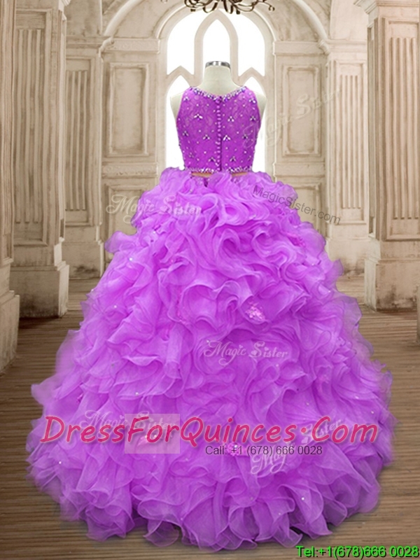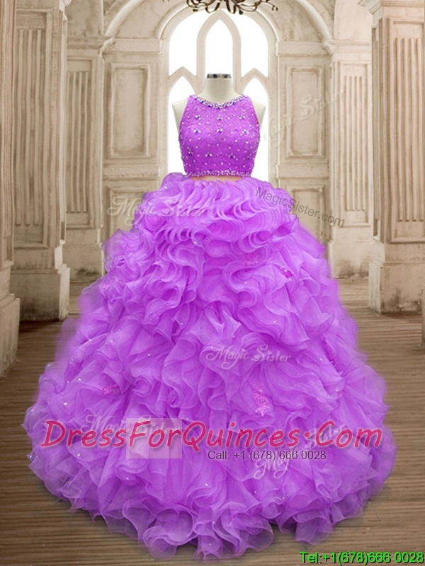 Wonderful Beaded and Ruffled Scoop Sweet 16 Dress in Lilac