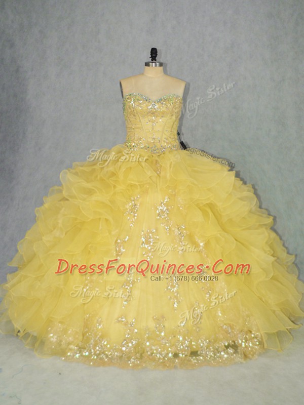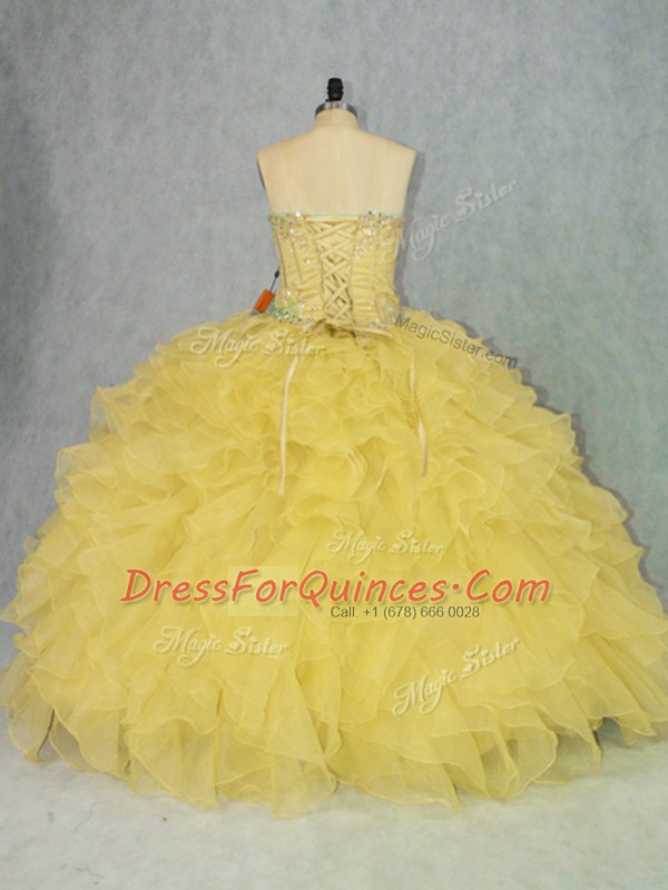 Yellow Sleeveless Organza Lace Up Quinceanera Dress for Sweet 16 and Quinceanera
