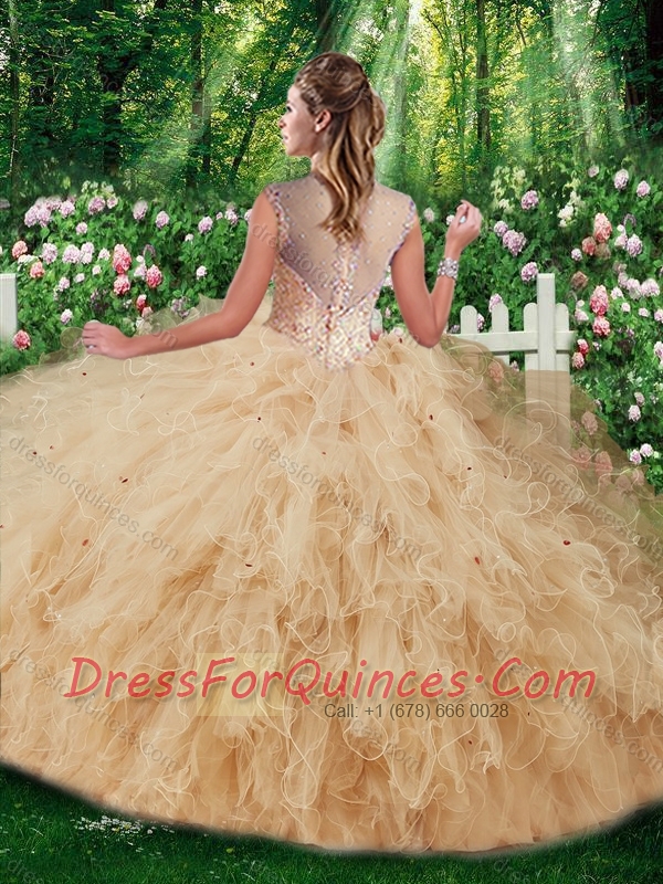 2016 Gorgeous Straps Beading Sweet 16 Gowns in Champange
