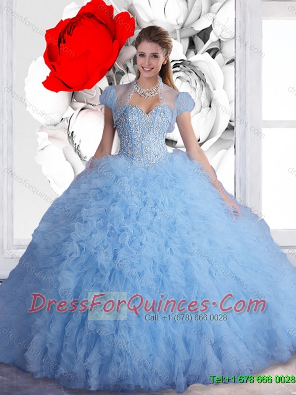 2016 Luxurious Light Blue Sweet 16 Dresses with Beading