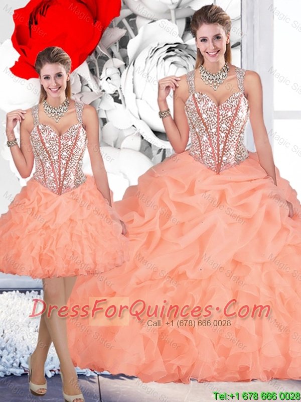 2016 Perfect Straps Orange Detachable Quinceanera Dresses with Beading