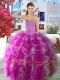 Cheap Fuchsia and White Organza Sweet 16 Dress with Beading and Ruffles