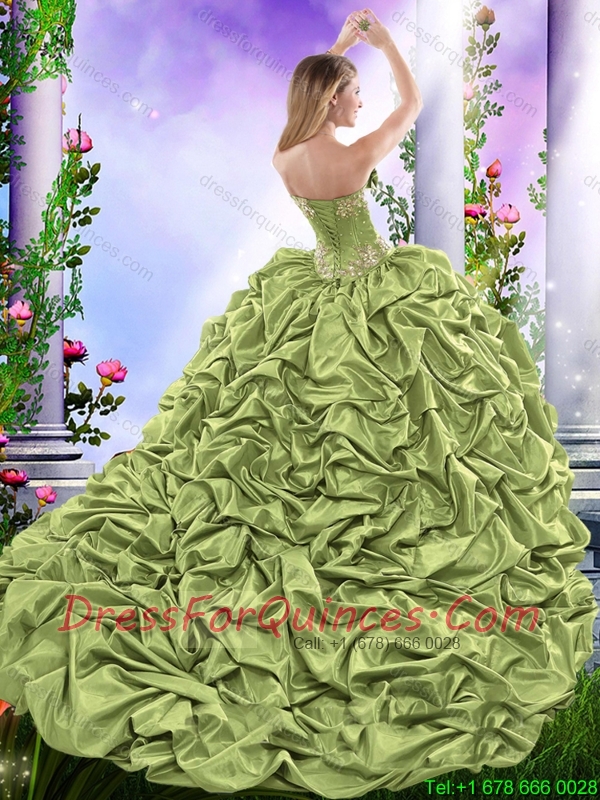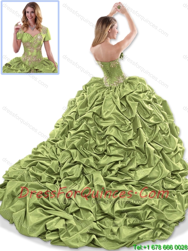 Discount Appliques 2016 Quinceanera Dresses with Brush Train