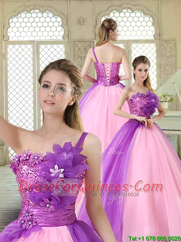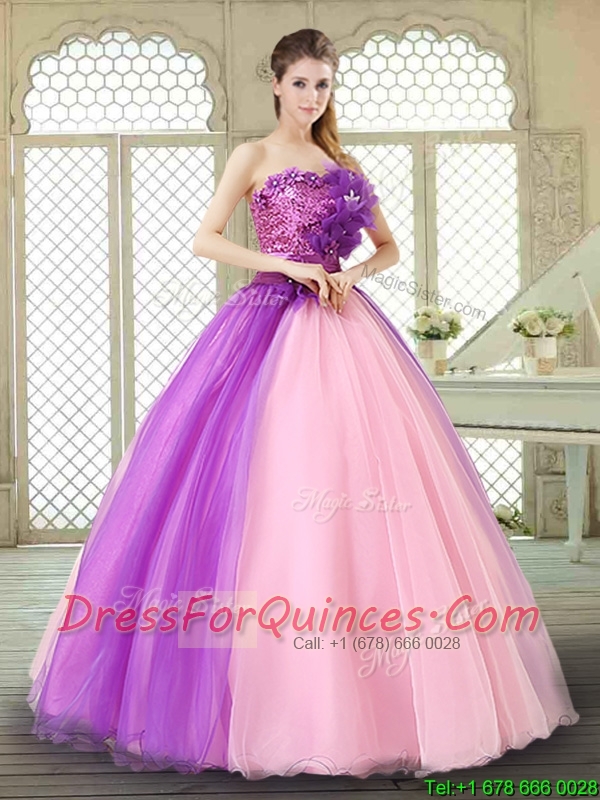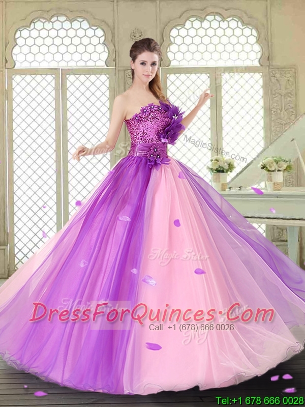 Elegant Hand Made Flowers Sweetheart Quinceanera Dresses in Multi Color