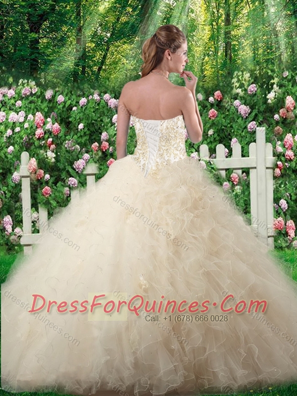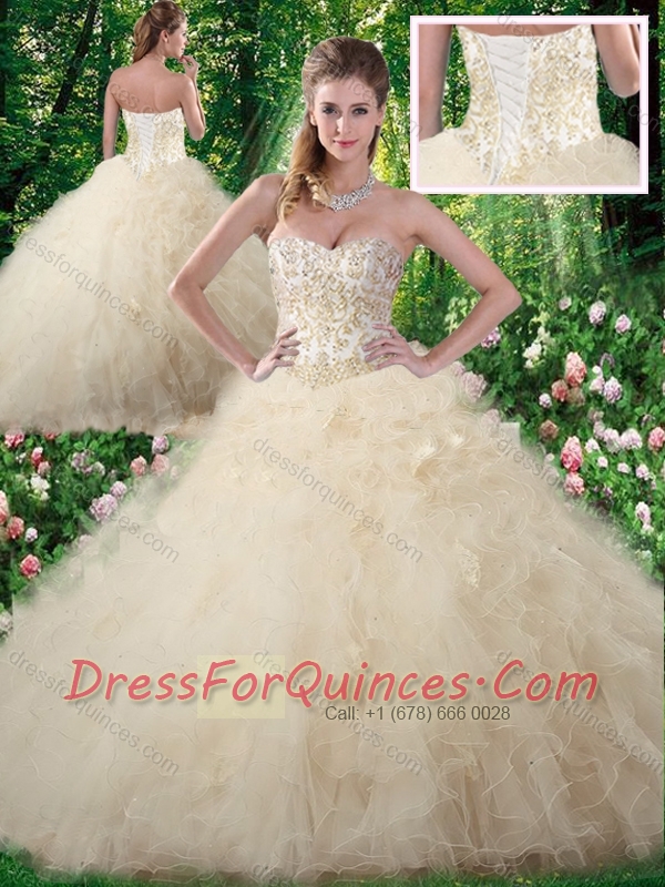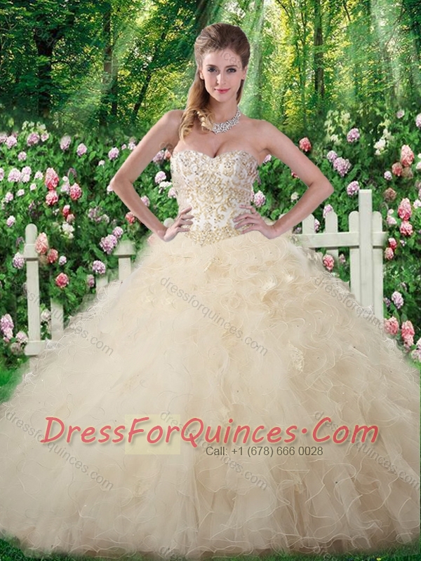 Exquisite2016 Champagne Sweet 16 Dresses with Beading and Ruffles
