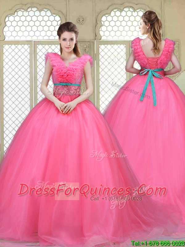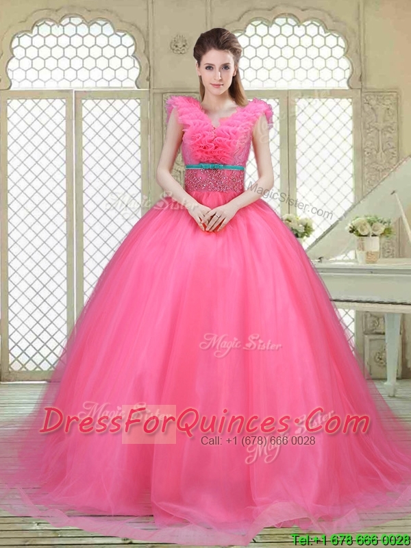 Fashionable Brush Train Quinceanera Dresses in Hot Pink
