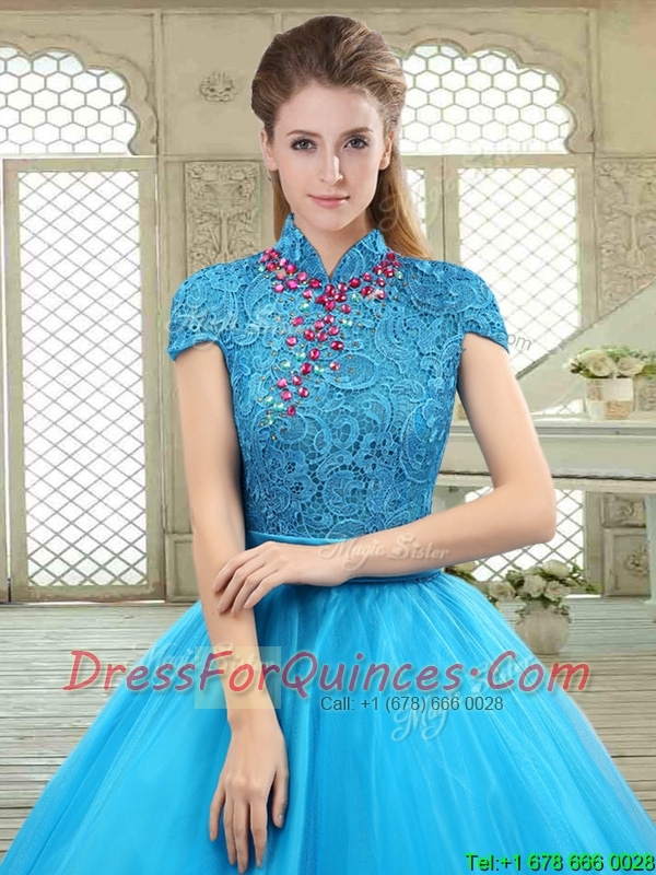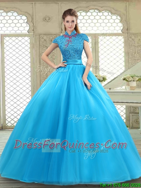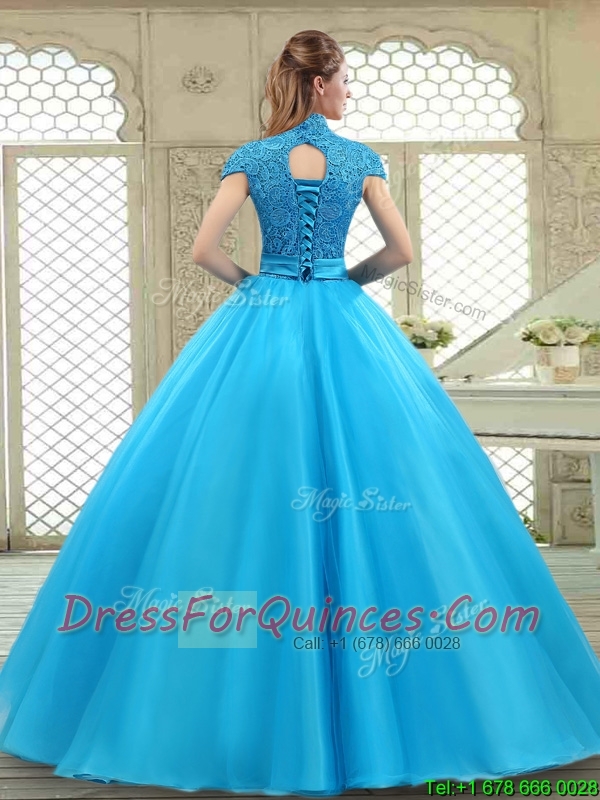 Fashionable High Neck Quinceanera Gowns in Baby Blue