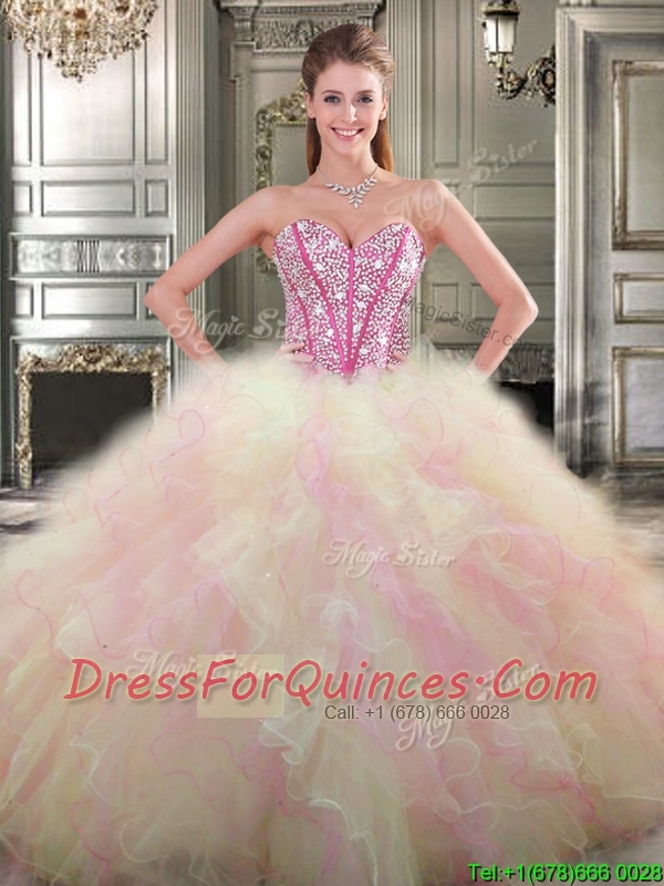 Lovely Big Puffy Tulle Quinceanera Dress with Beading and Ruffles
