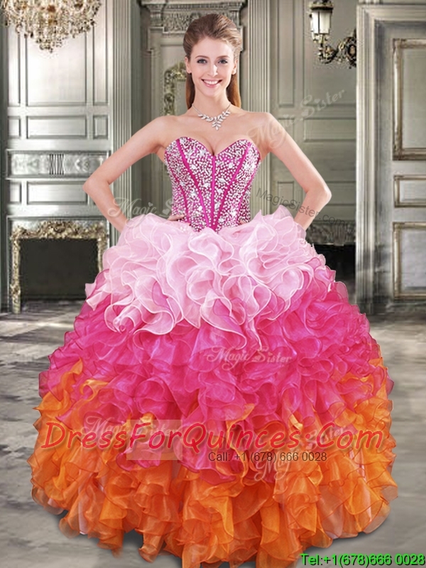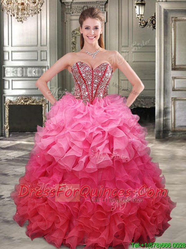 New Gradient Color Big Puffy Sweet 16 Dress with Beading and Ruffles