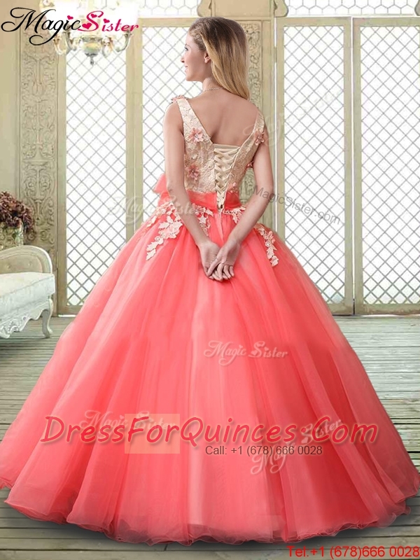 Spring Straps Quinceanera Dresses with Appliques and Hand Made Flowers