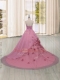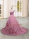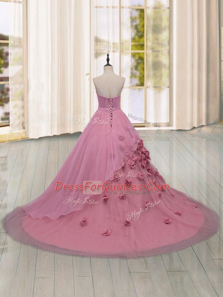 Unique Sleeveless Brush Train Hand Made Flower Lace Up Vestidos de Quinceanera