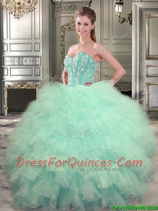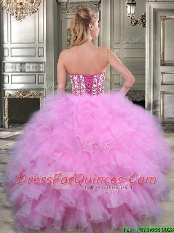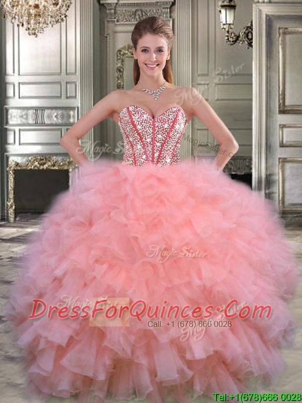 Visible Boning Beaded Bodice and Ruffled Quinceanera Dress in Watermelon Red