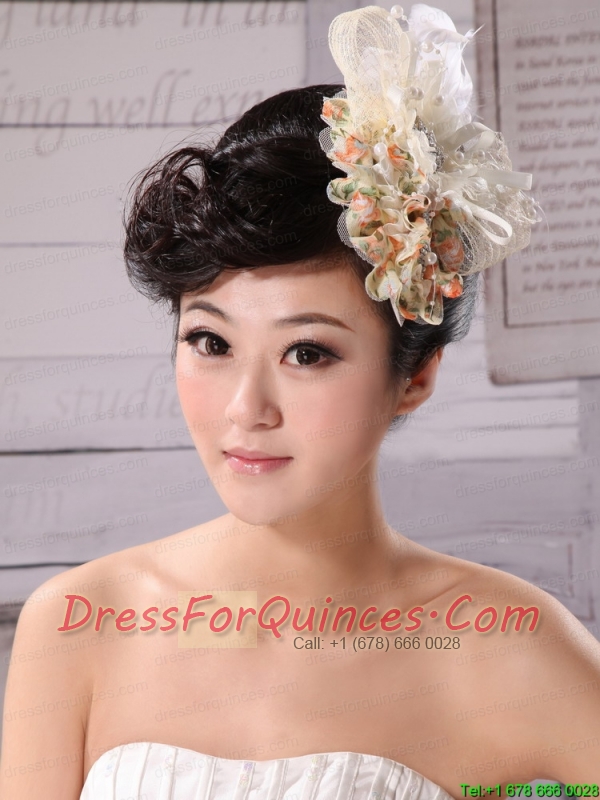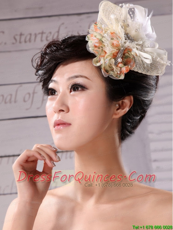 Champagne Tulle and Chiffon Fascinators With Imitation Pearls