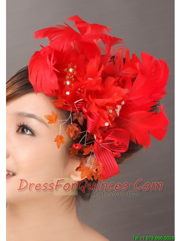 Elegant Red Feather Flowers Beading Womens Fascinators