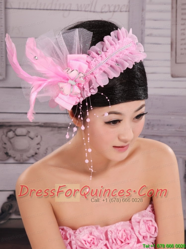 Lovely Imitation Pearls and Feather Decorate Tulle Headpices For Cocktail