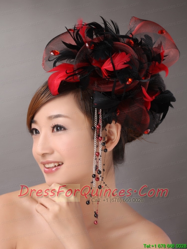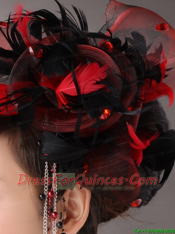 Multi-color Headpices With Feather and Tulle Headpices Rhinestones Decorate