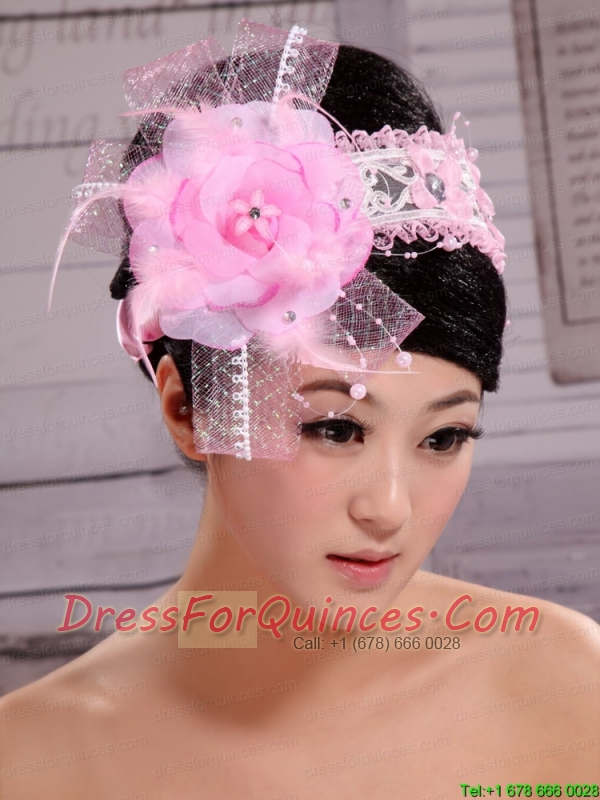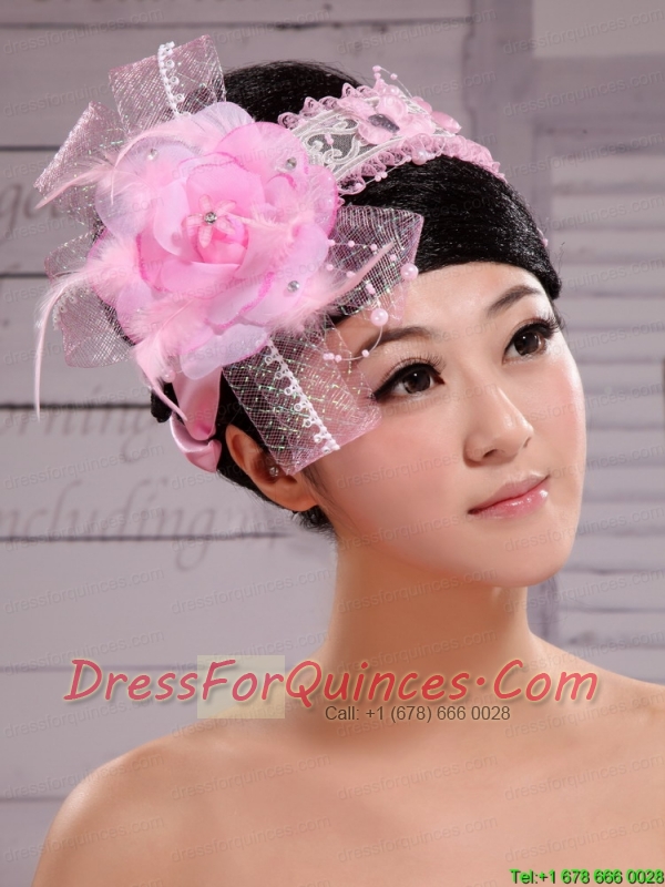 Palace Princess Korean Headdress Flower Net With Pearls and Feather