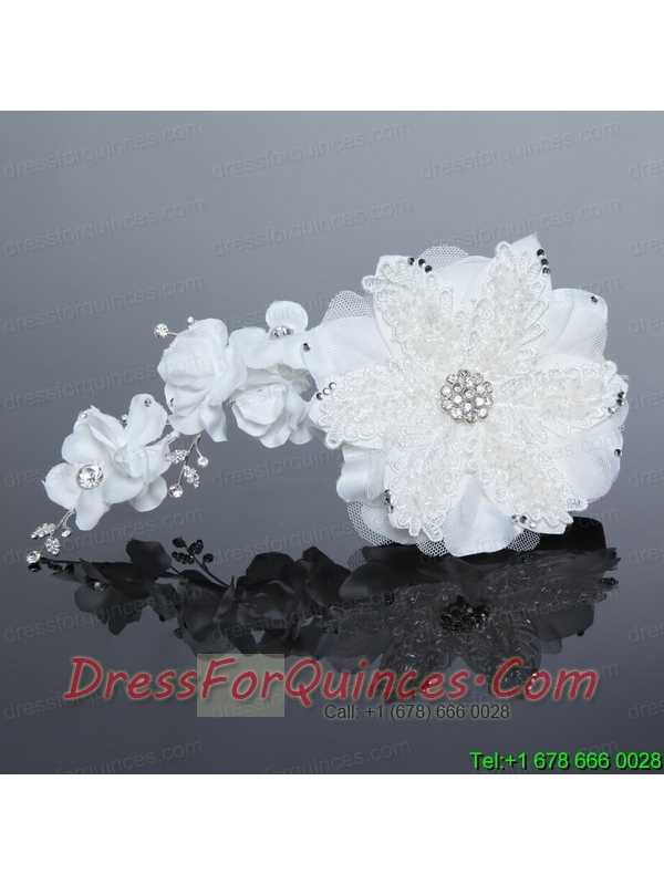 Pearl Lace and Tulle Wedding White Beading Hair FlowersPearl Lace and Tulle Wedding White Beading Hair Flowers