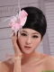 Pink and White Satin Feather With Pearls Flowers For Party