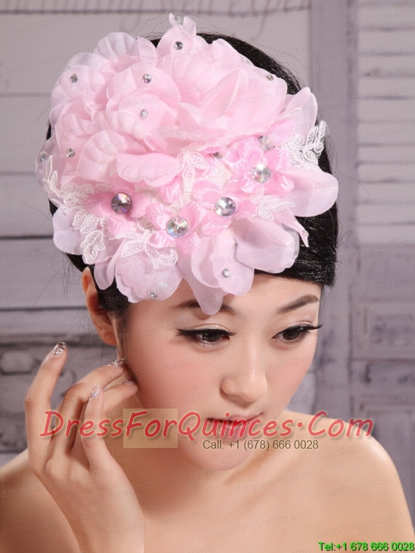 Pink Chiffon Beading Bud Silk Fascinators For Wedding