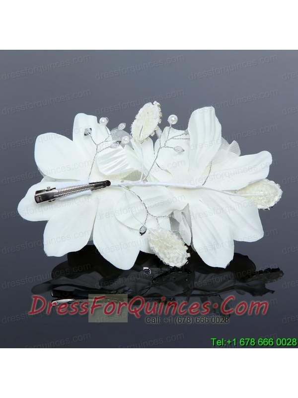Pretty White Tulle Imitation and Pearls Hair Flower