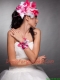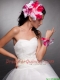 Red and White Organza Hand Made Flowers Beaded Headpieces and Wrist Corsage