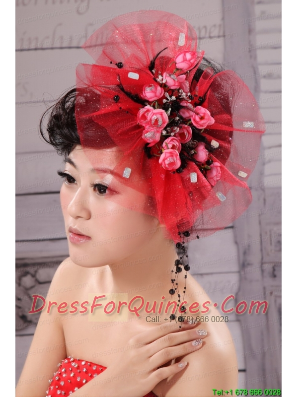 Red Fascinators Tulle Hand Made Flowers Outdoor and Special Occasion