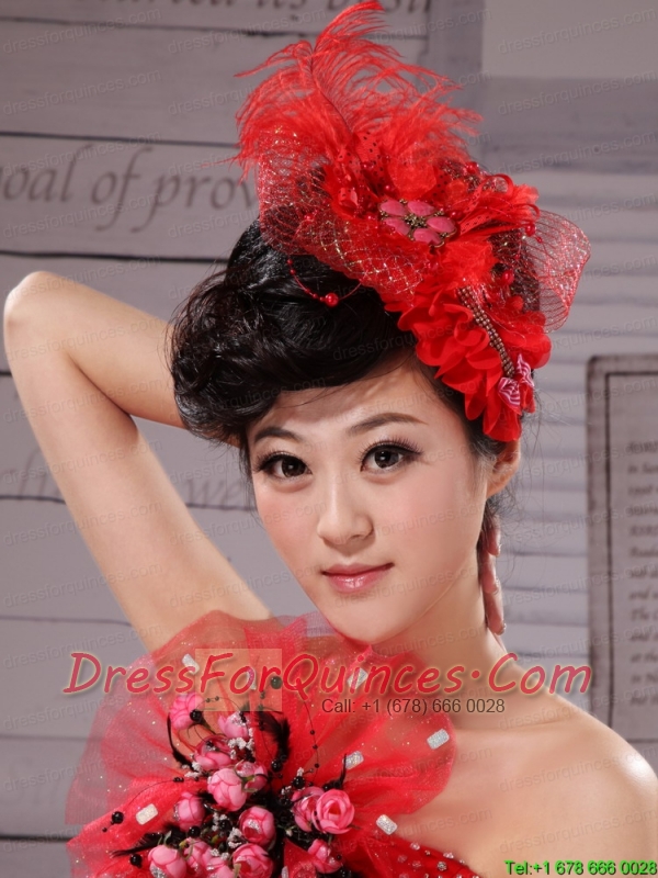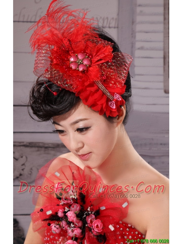 Red Hairpins Birdcage Veils Tulle Feather Outdoor and Special Occasion and Outdoor