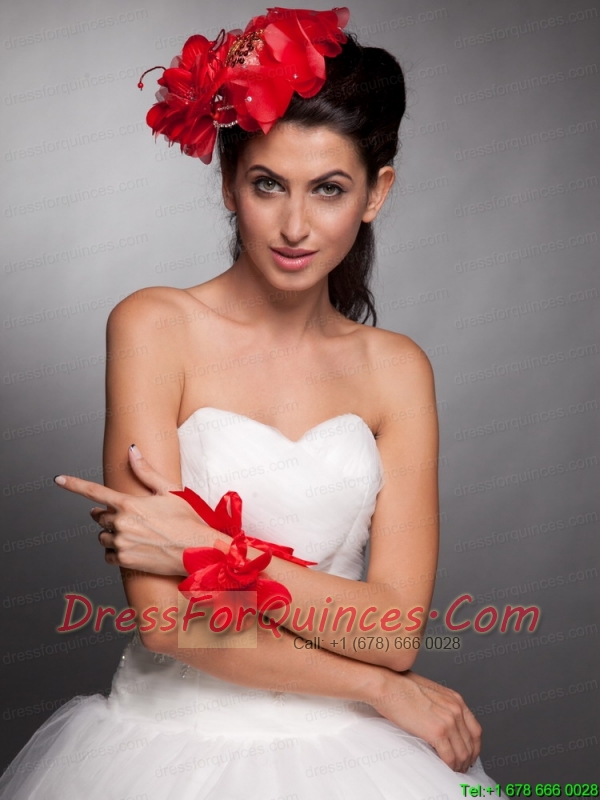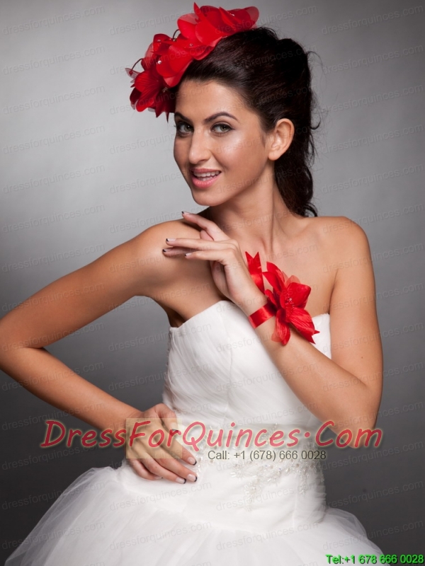 Red Hand Made Flowers Taffeta Headpieces and Wrist Corsage