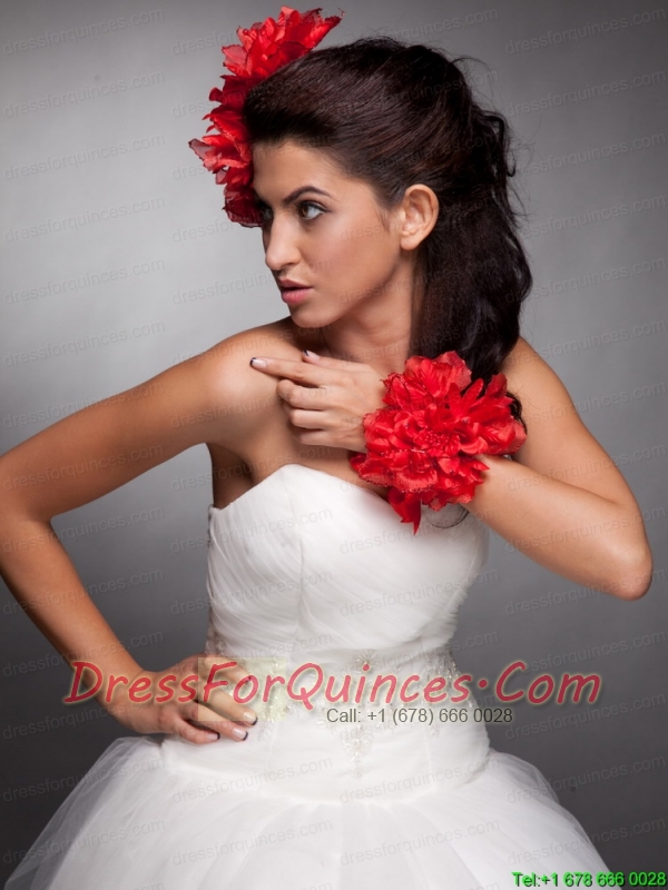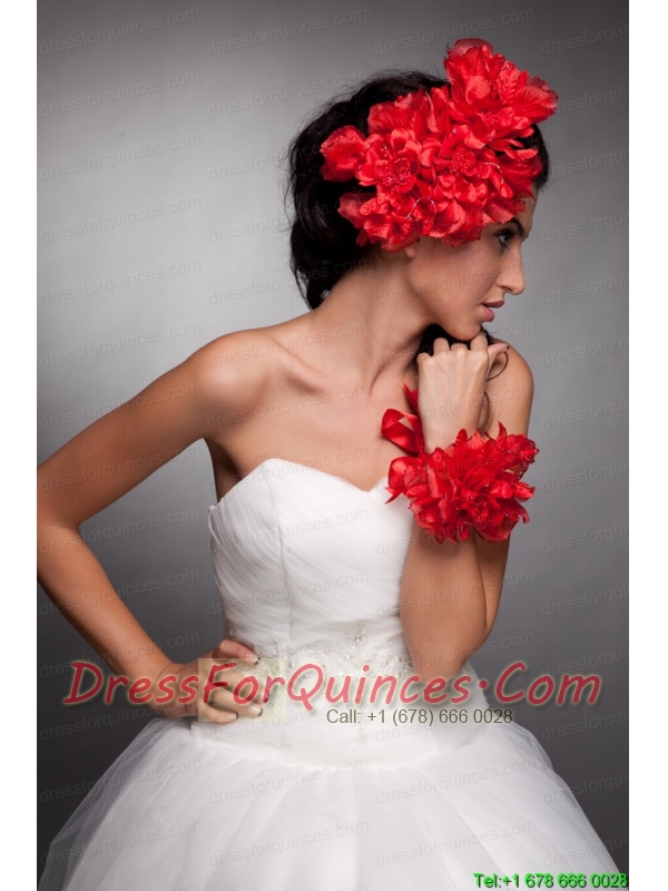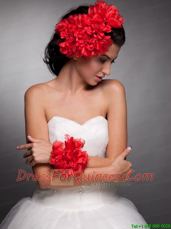Red Taffeta Hand Made Flowers Headpieces and Wrist Corsage