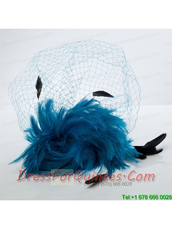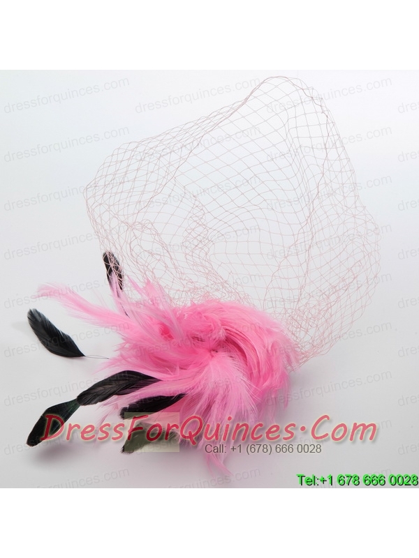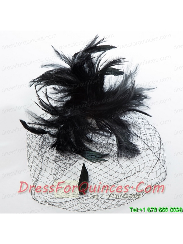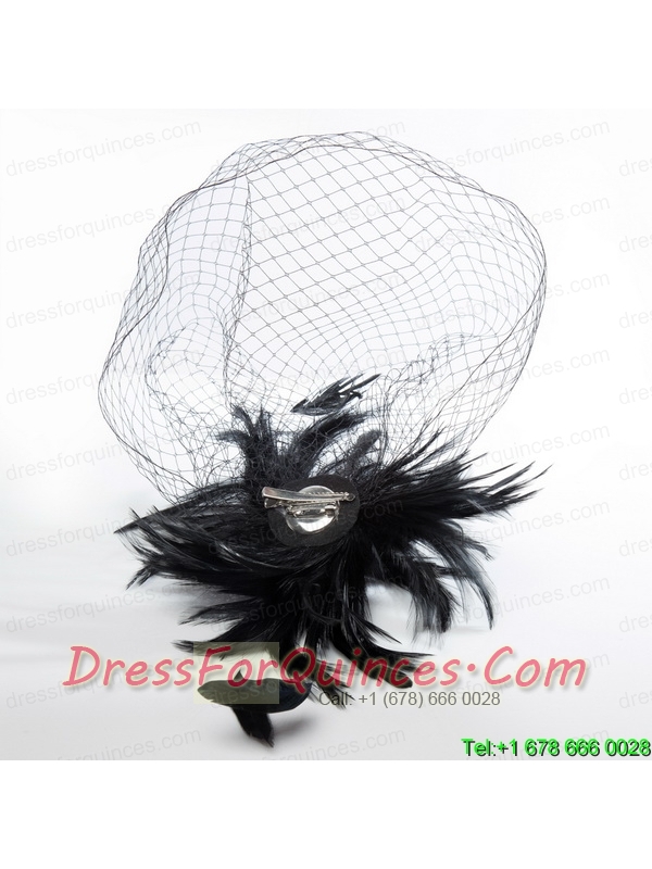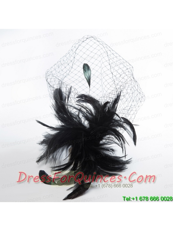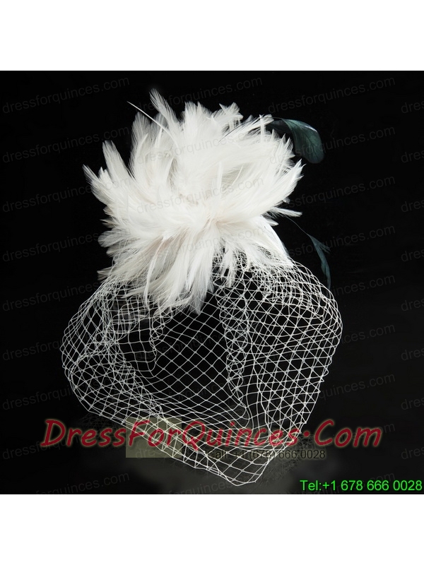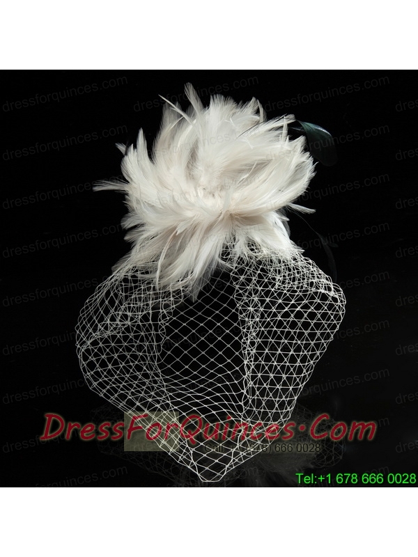 White Feather Elegant Net Yarn Briadl Hat with Imitation Pearls