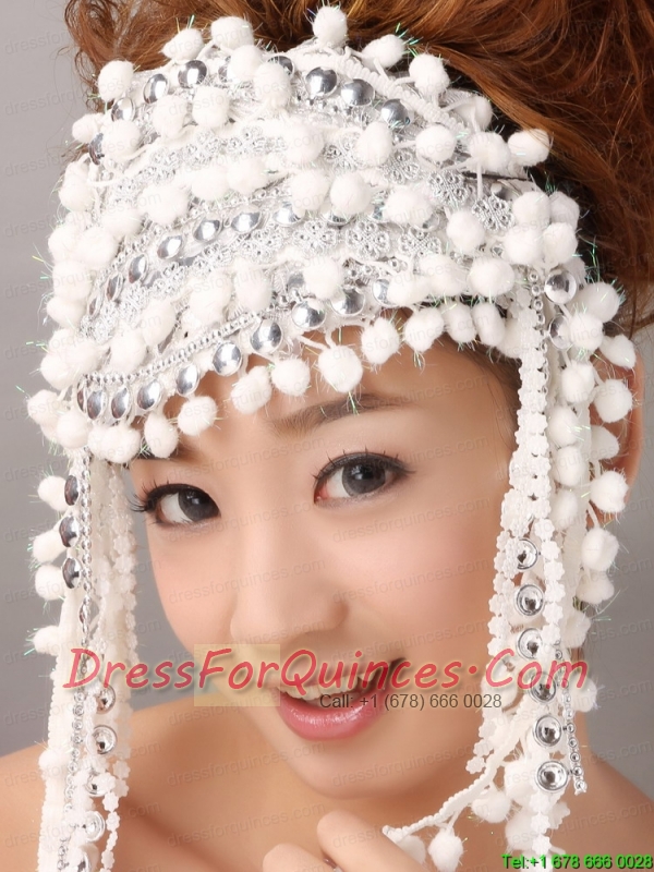 White Inexpensive Fascinator With Special Fabric