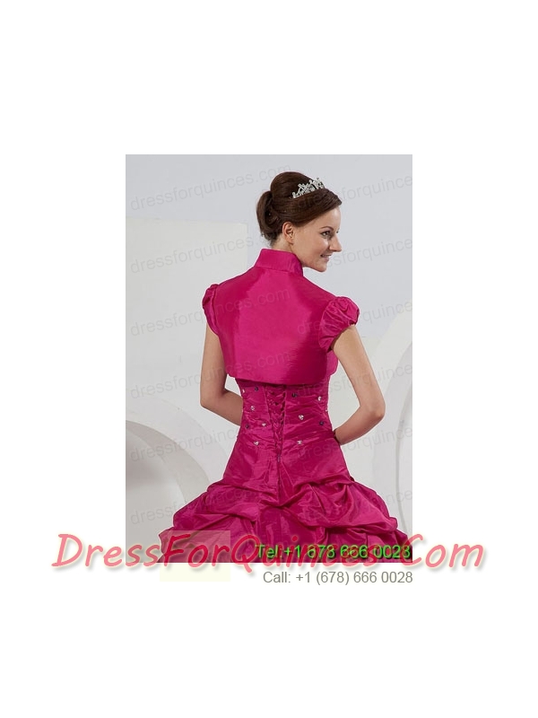 Custom Made Open Front Short Sleeves Fuchsia Quinceanera Jacket For 2014