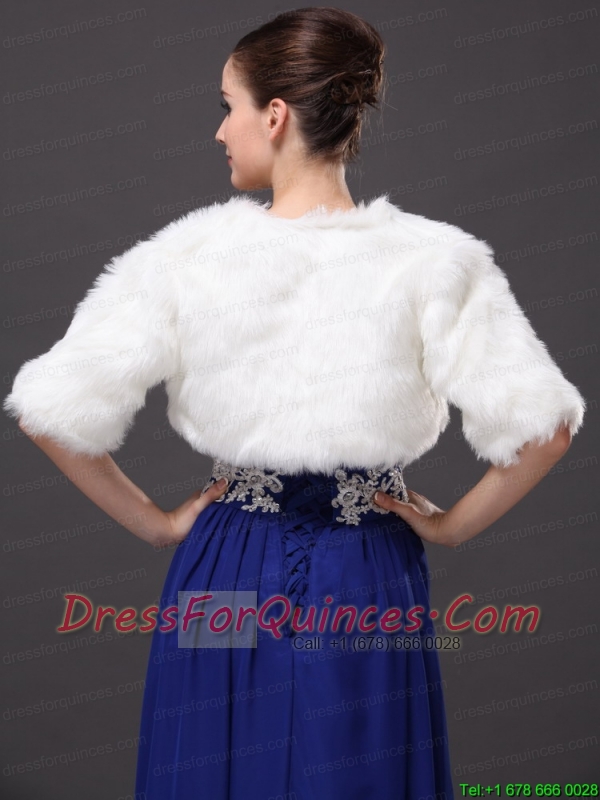 Exquisite Faux Fur V-Neck Half-Sleeves Wedding Party and Prom White Jacket
