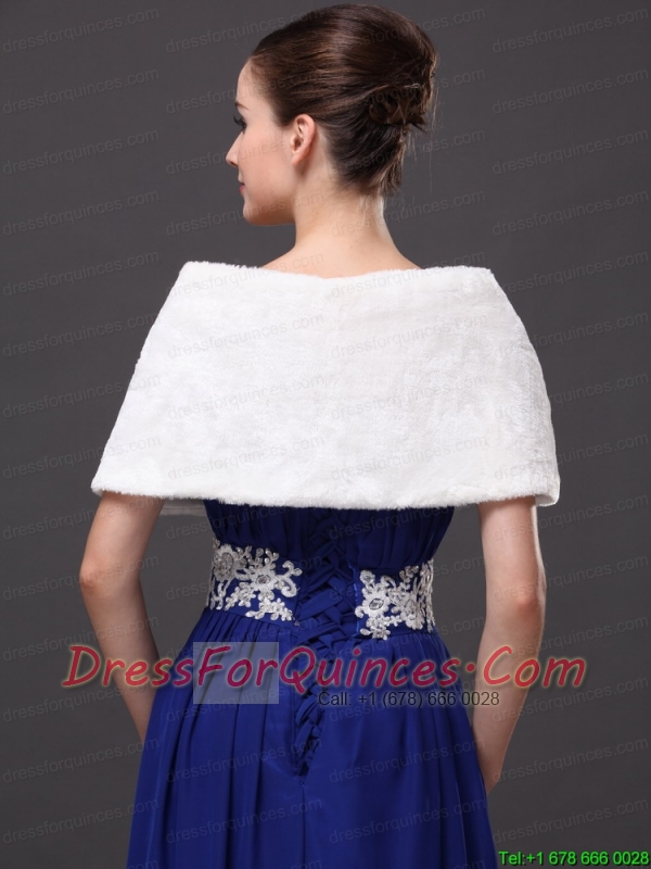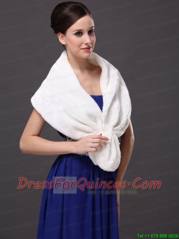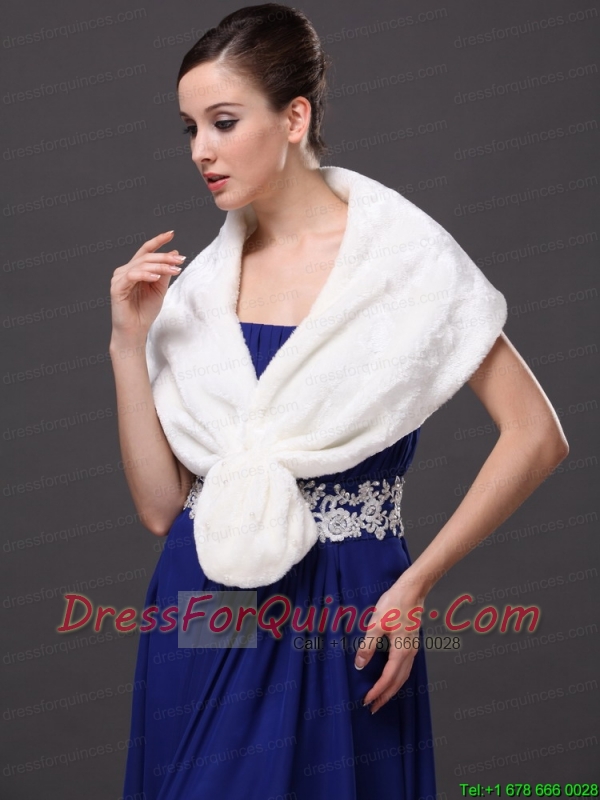 Faux Fur Fashionable V-Neck White Wedding Party and Prom or Cocktail Wedding Wrap
