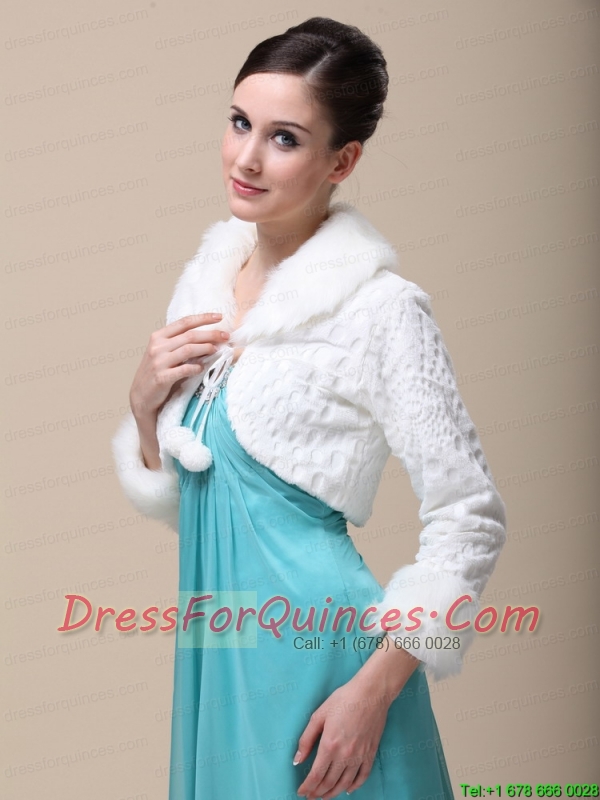 Faux Fur Special Occasion / Wedding Jacket With Long Sleeves and Fold-over Collar