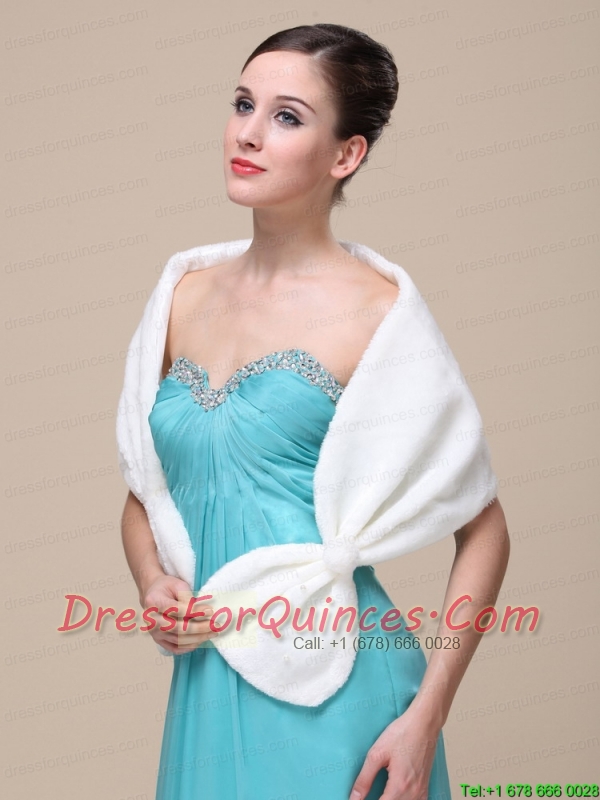 Faux Fur Special Occasion / Wedding Shawl In Ivory With V-neck