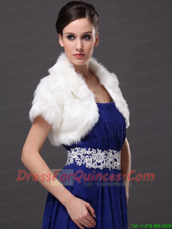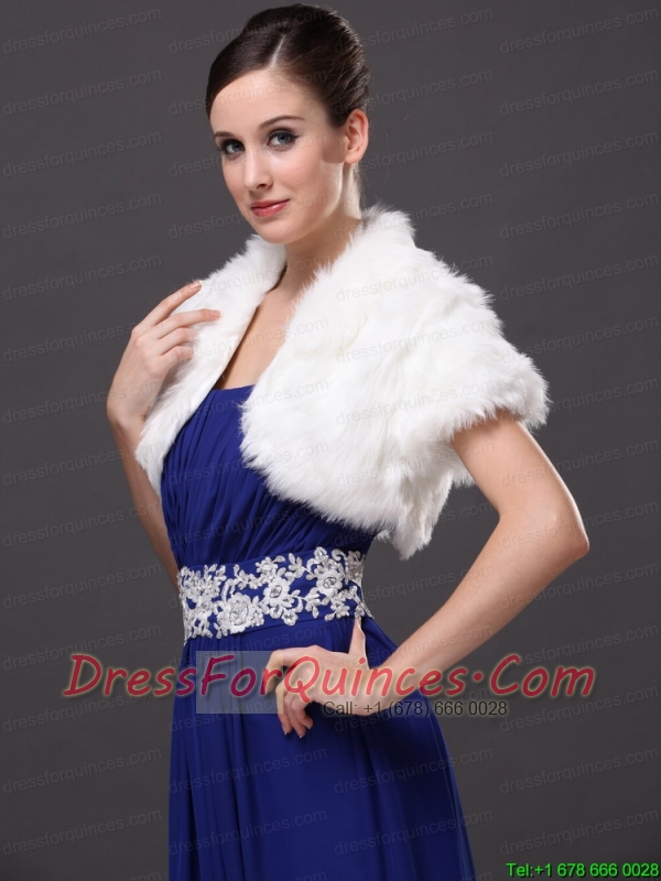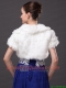 Faux Fur V-Neck Fashionable Wedding Short Sleeves Prom Jacket White