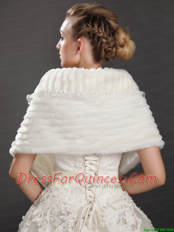 Luxurious Button Faux Fur Fold-over Collar Wrap / Shawl