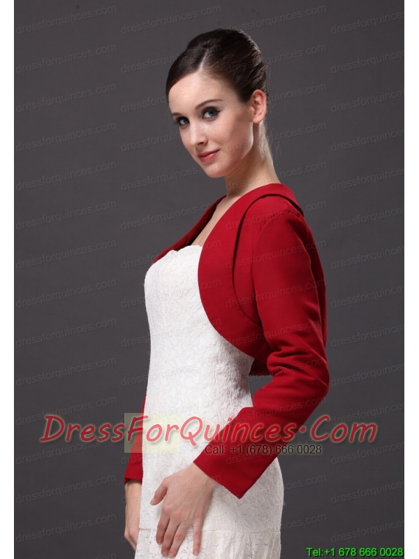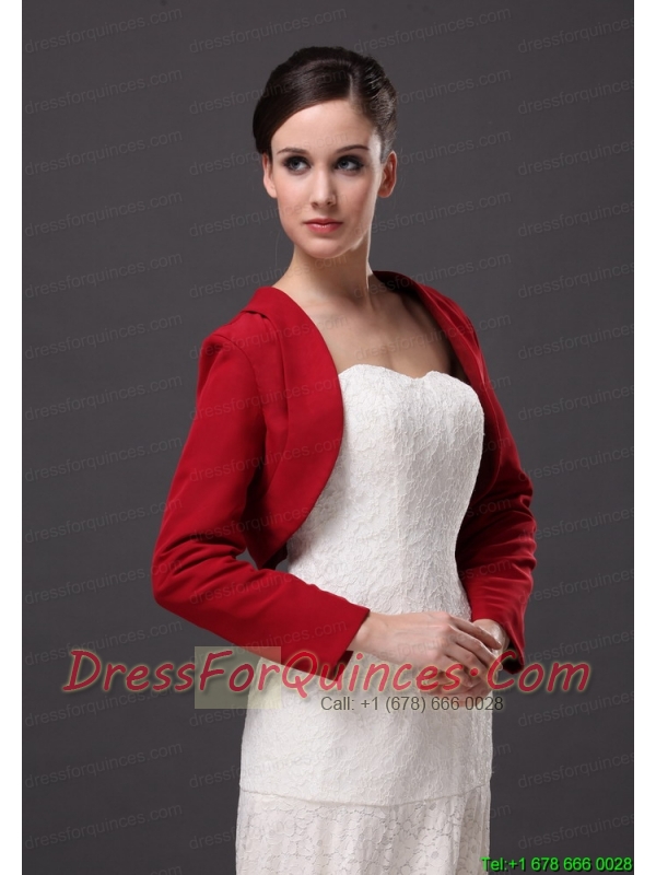 Red Satin Long Sleeves Jacket For Wedding Party