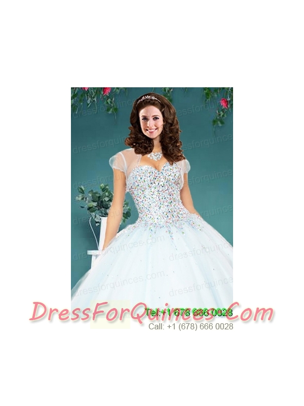 The Super White Tulle Special Occasion Quinceanera Jacket with Beading