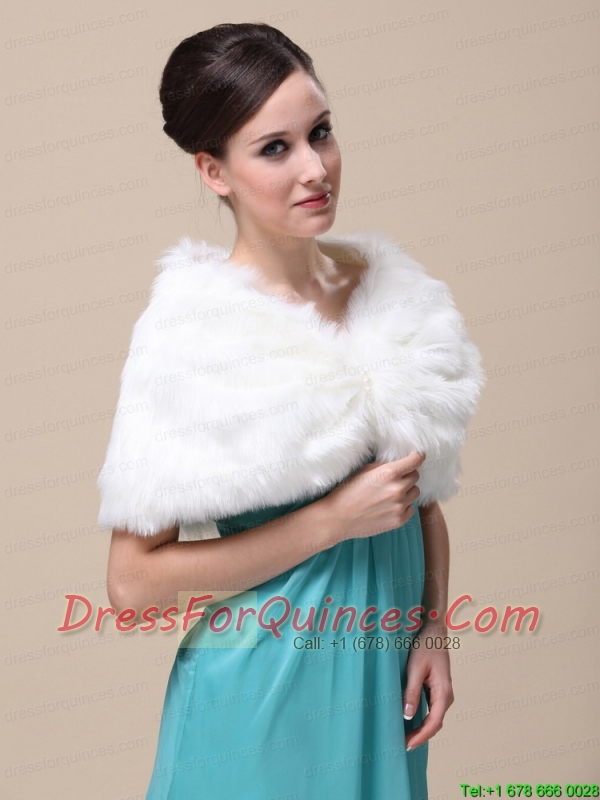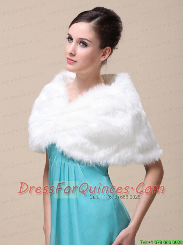 Unique Rabbit Fur Special Occasion / Wedding Shawl In Ivory With V-neck