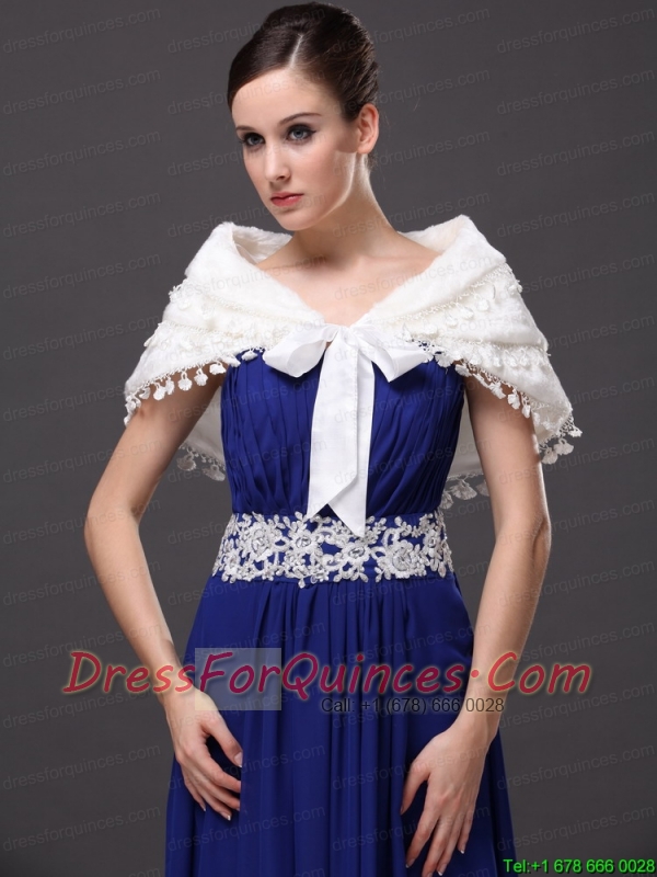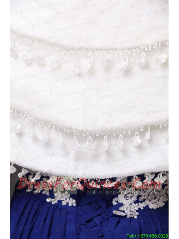 V-Neck White Wedding Party and Prom or Cocktail Faux Fur Wedding Wrap