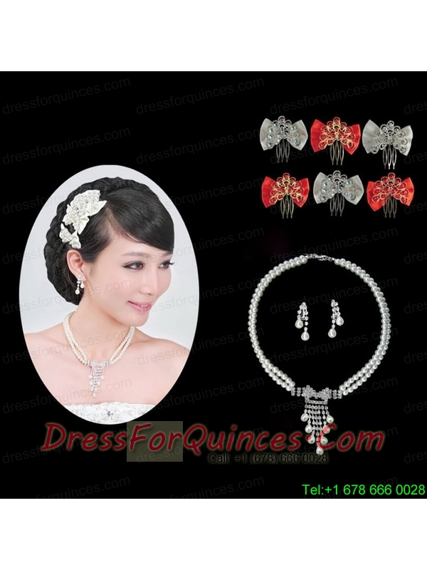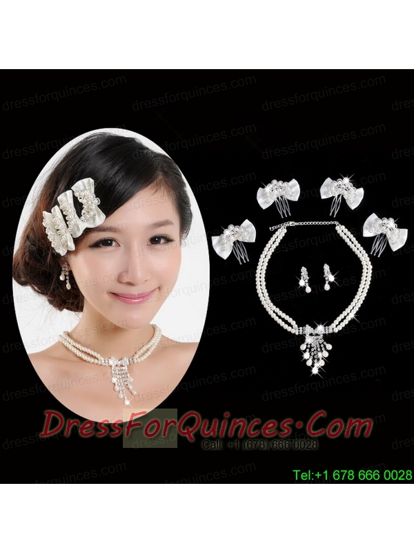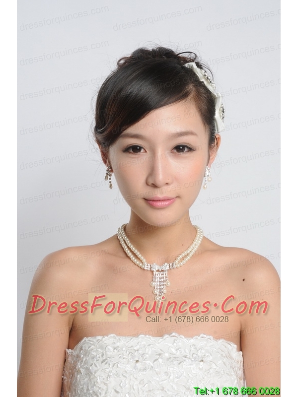 Amazing Alloy With Peals Wedding Jewelry Set Including Necklace Earrings And Headpiece