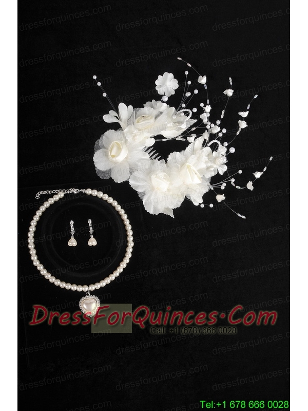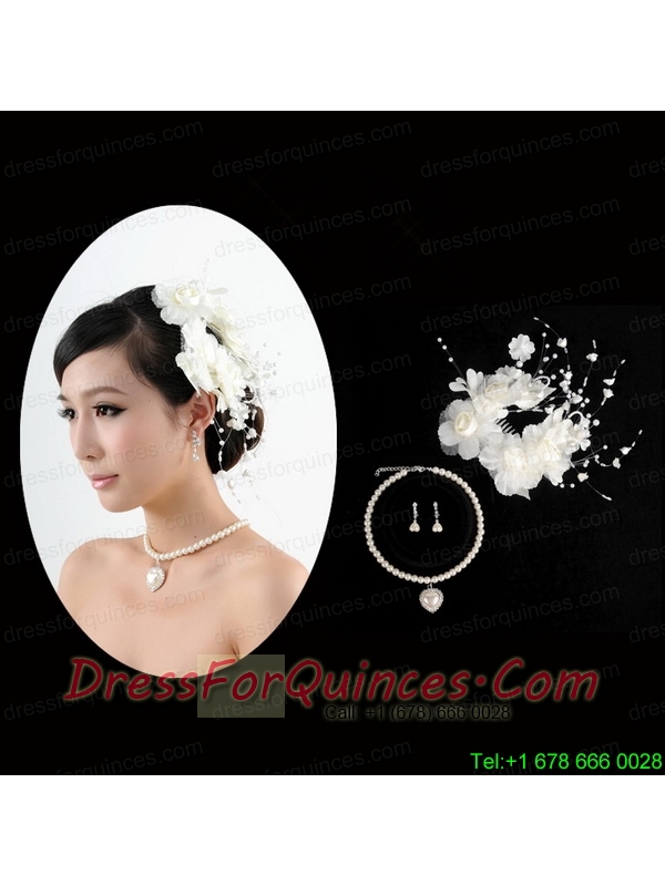 Charming Jewelry Set with Headpiece Immitation Pearl Necklace And Earrings