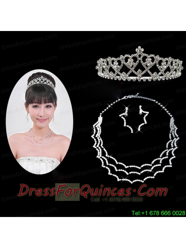 Elegant Alloy With Rhinestone Ladies' Necklace and TiaraElegant Alloy With Rhinestone Ladies' Necklace and Tiara