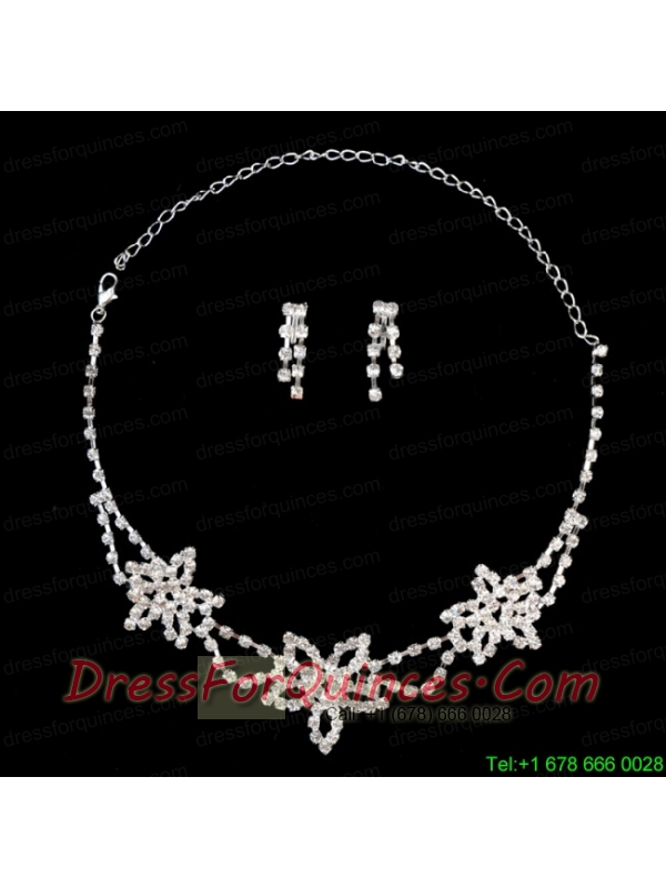 Exquisite Flower Shaped Rhinestone Wedding Jewelry Set Including Necklace And Earrings