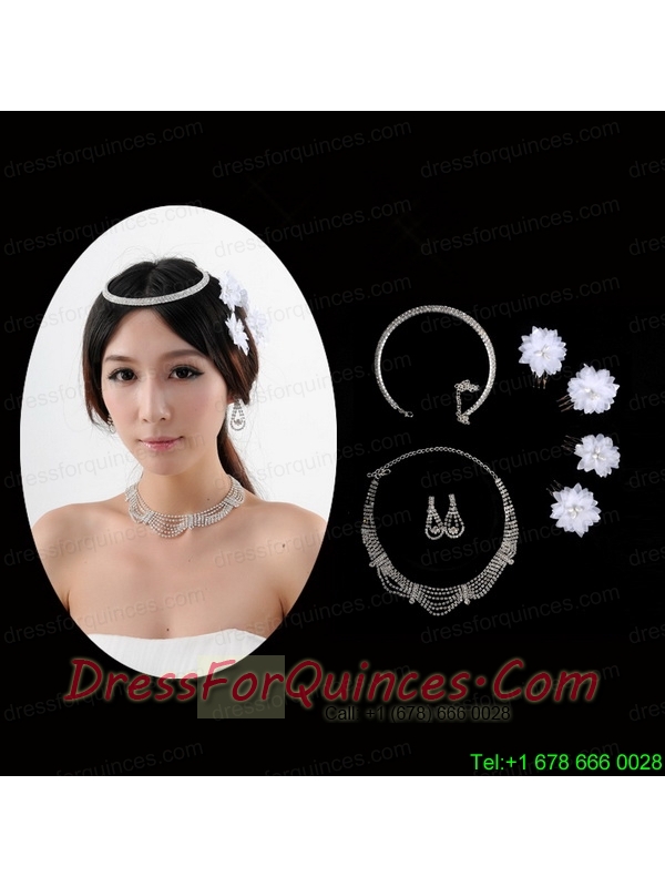 Fashionable Bracelet with Crystal Necklace and Earing Jewelry Set
