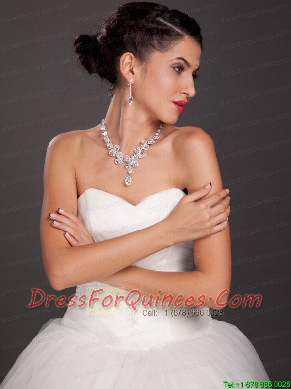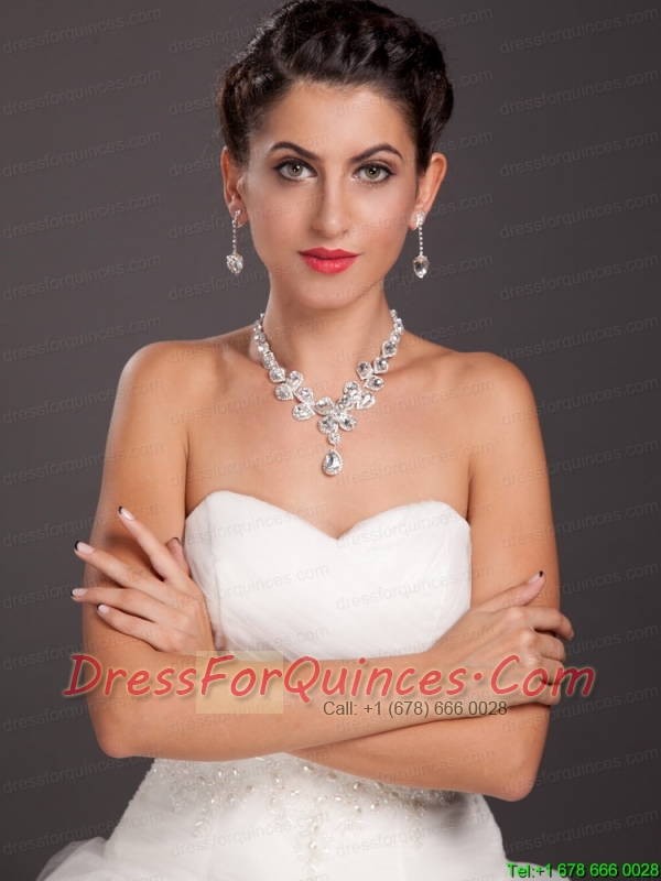 Gorgeous Rhinestone and Imitation Pearl Bridal Jewelry Set Including Necklace With Earrings